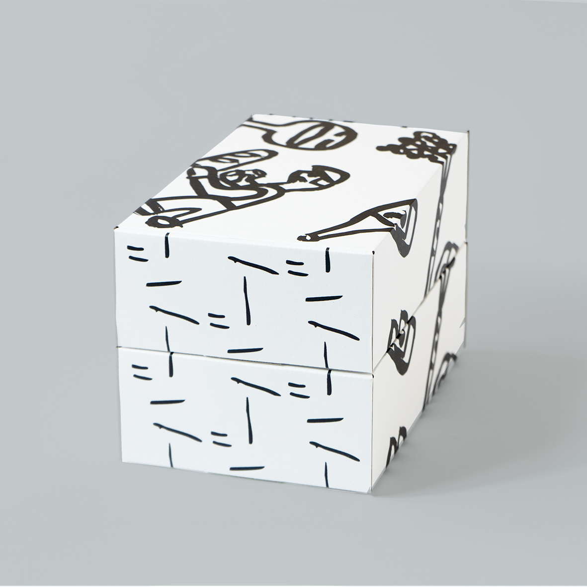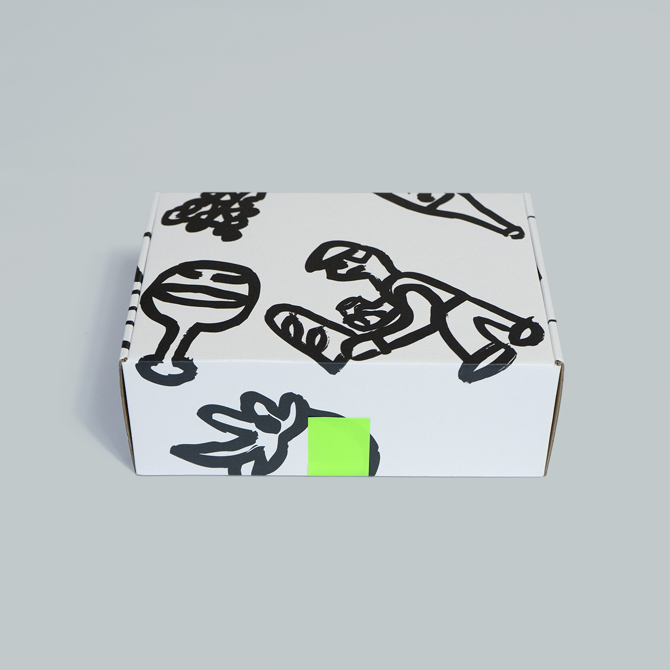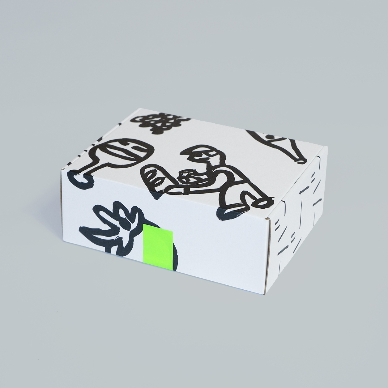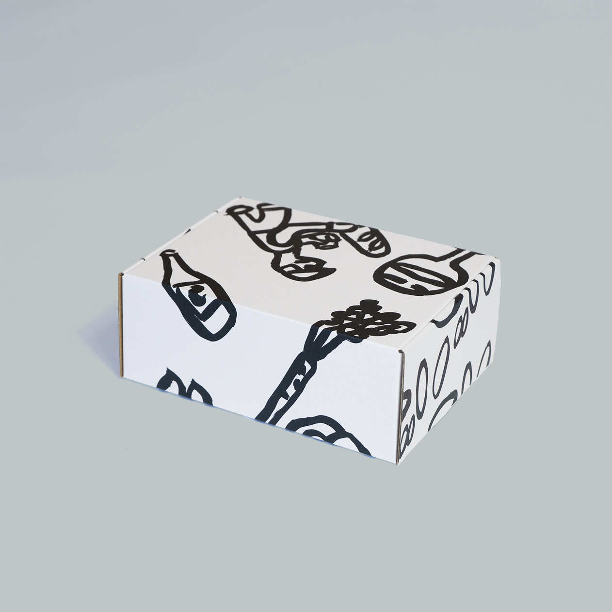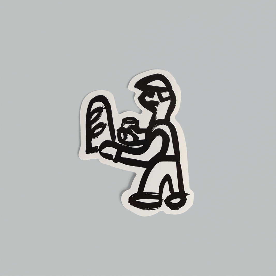 そして、このお店に訪れるであろうお客さん、売られるであろう商品(野菜や飲み物、食べ物)、オーナーである深津さん、お店の店長さんを太い黒の手書きによる線で描いています。