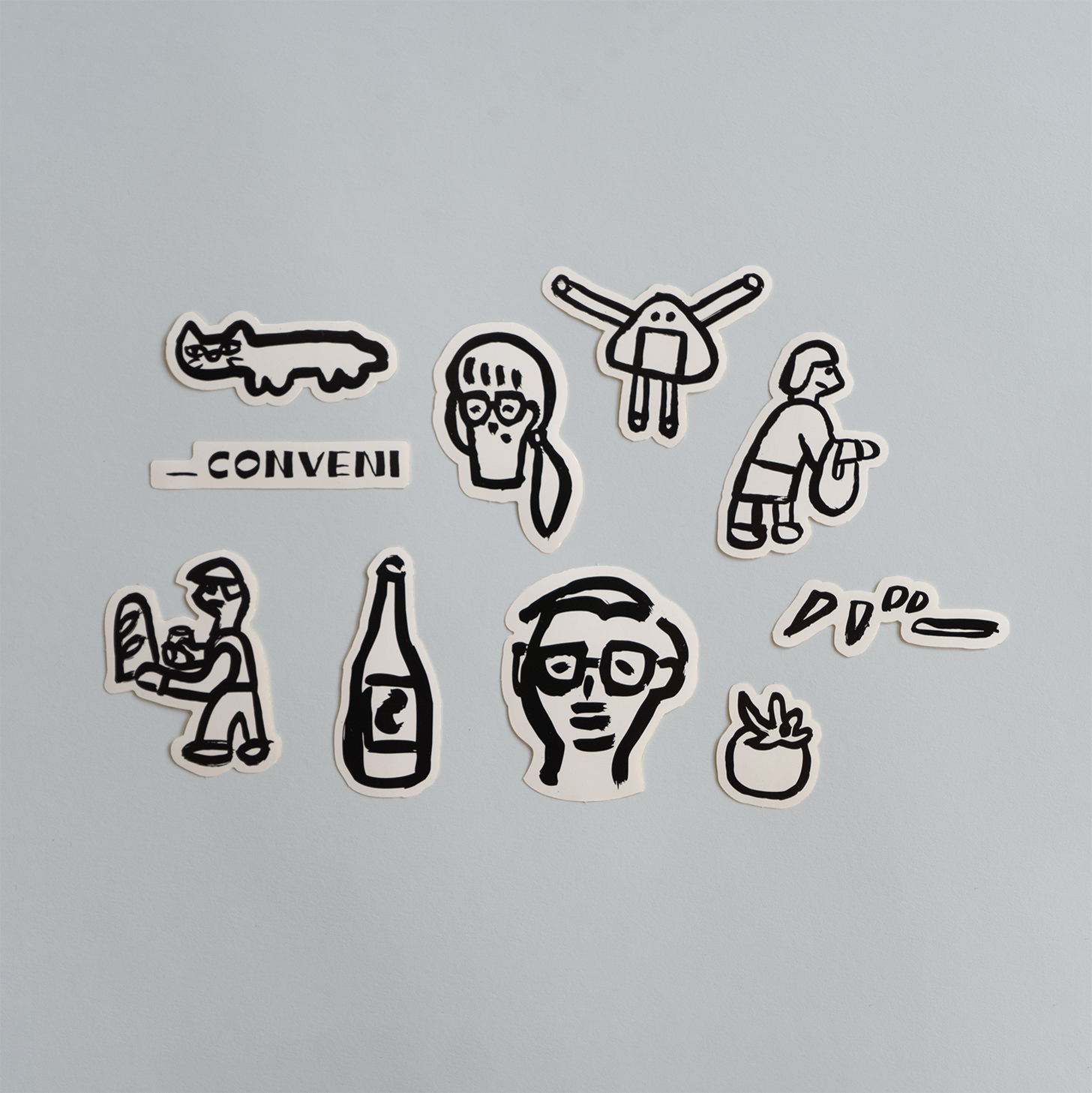 The bold black hand-drawn lines depict the individuals who bring this place to life—the customers who visit, the vegetables, drinks, and foods offered, the owner Mr. Fukatsu, and the store manager.
