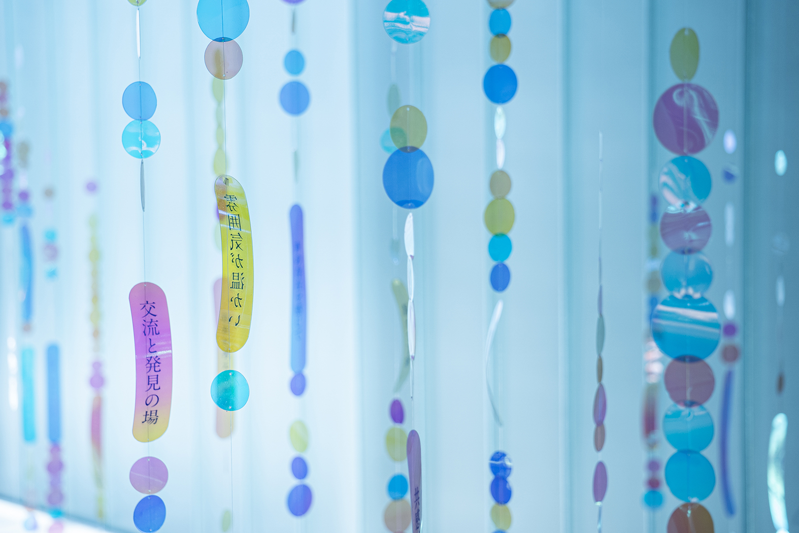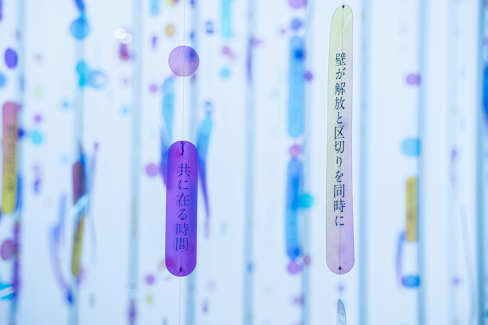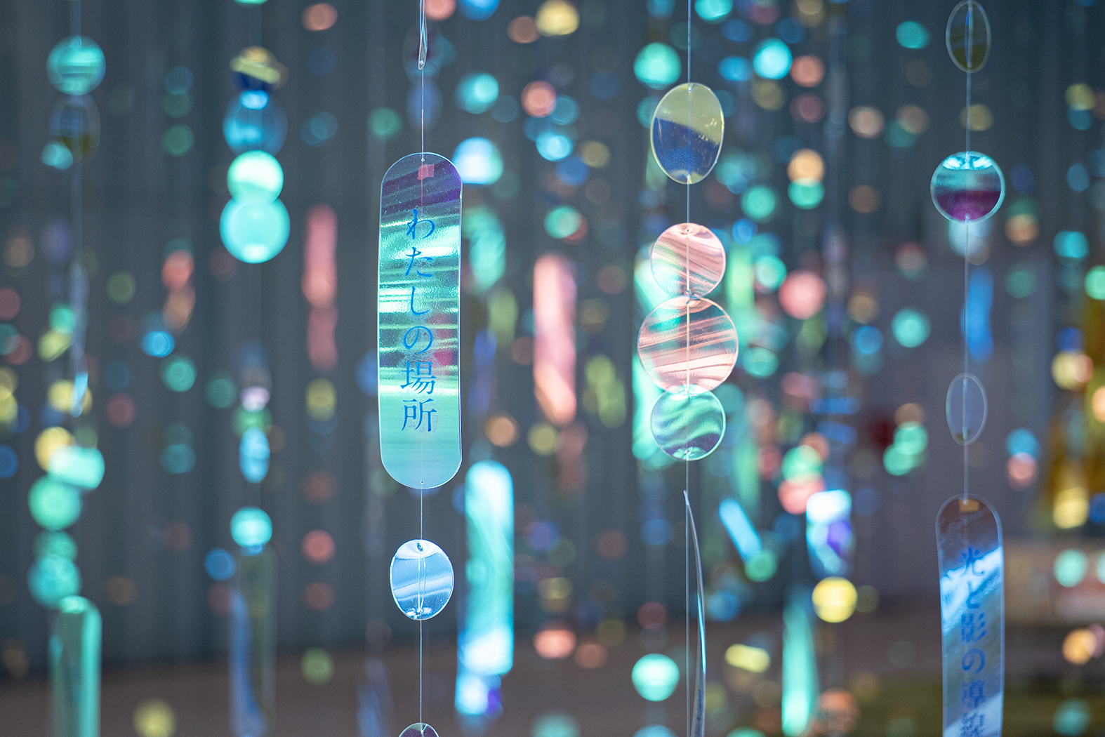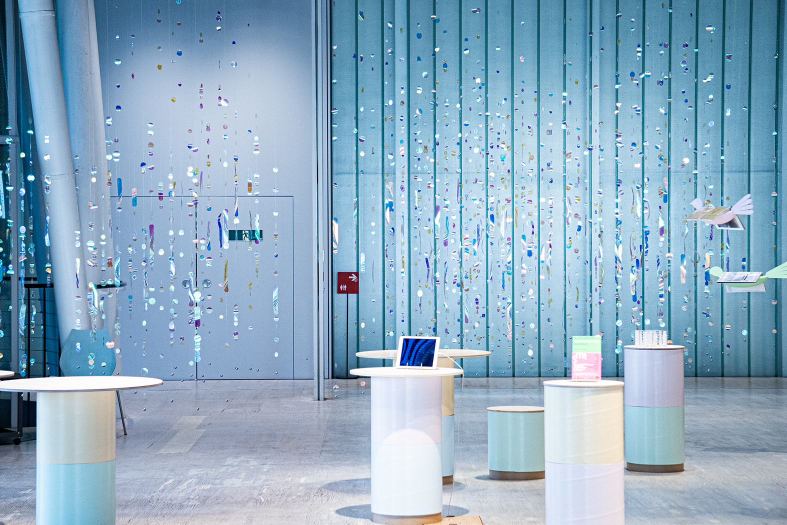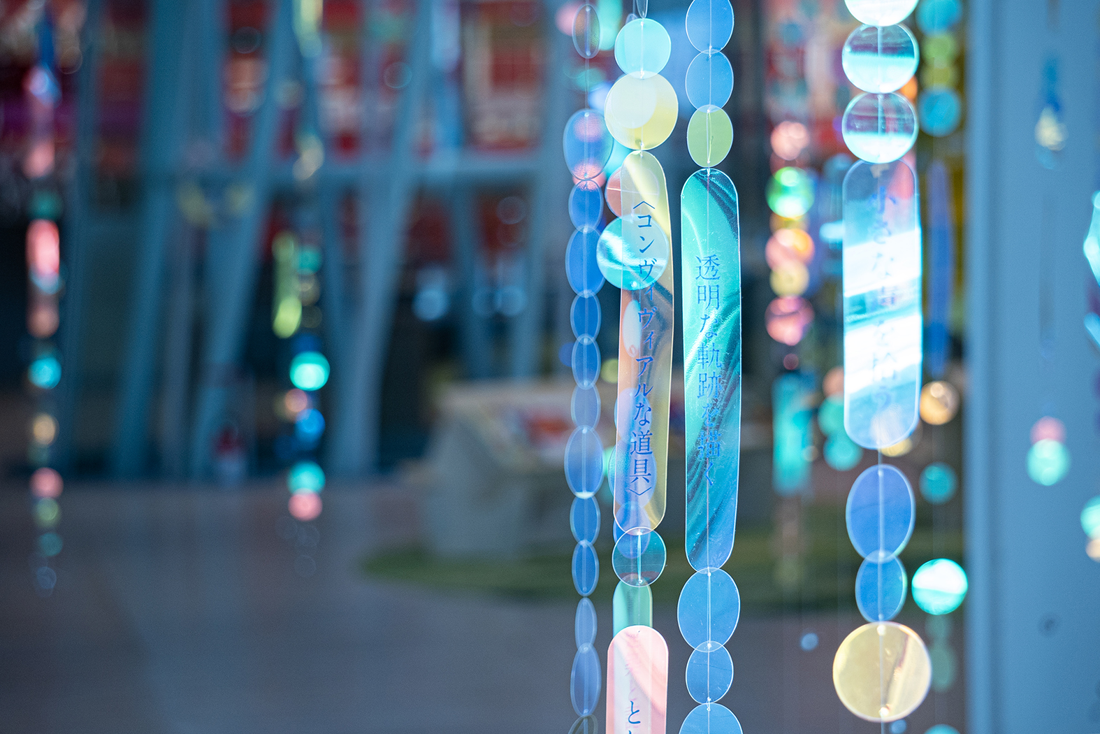 会場に無数に存在する「言葉の雨」は中川ケミカルさんのセプテットフィルムを加工した物。