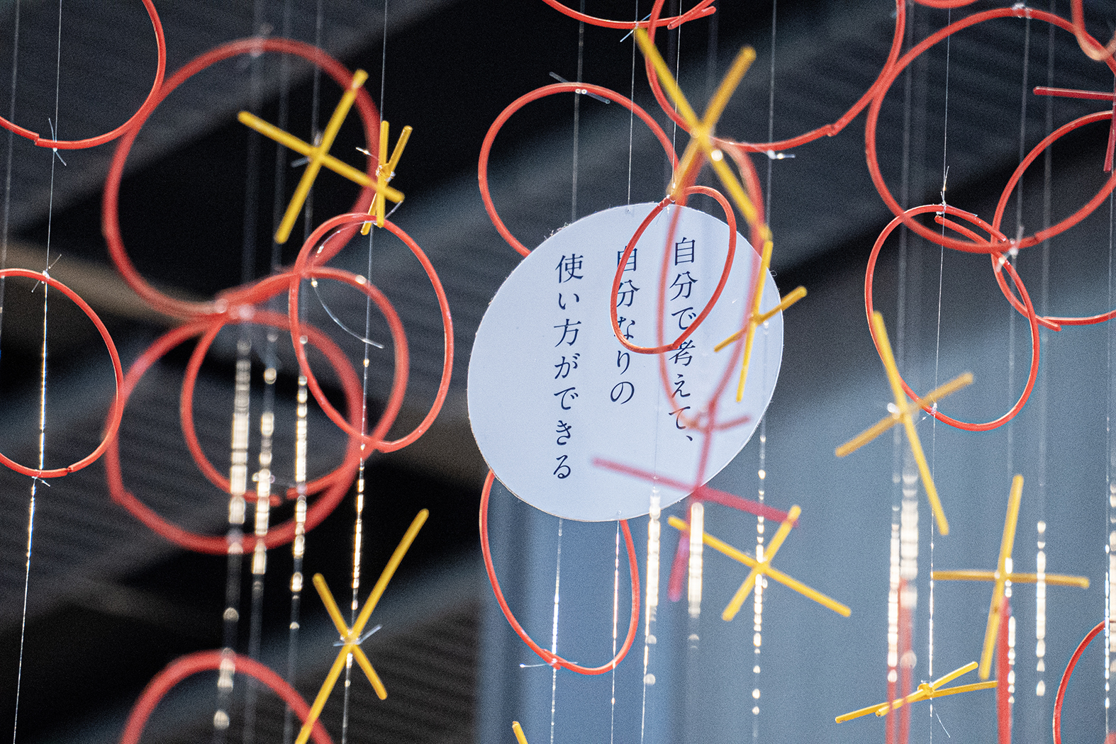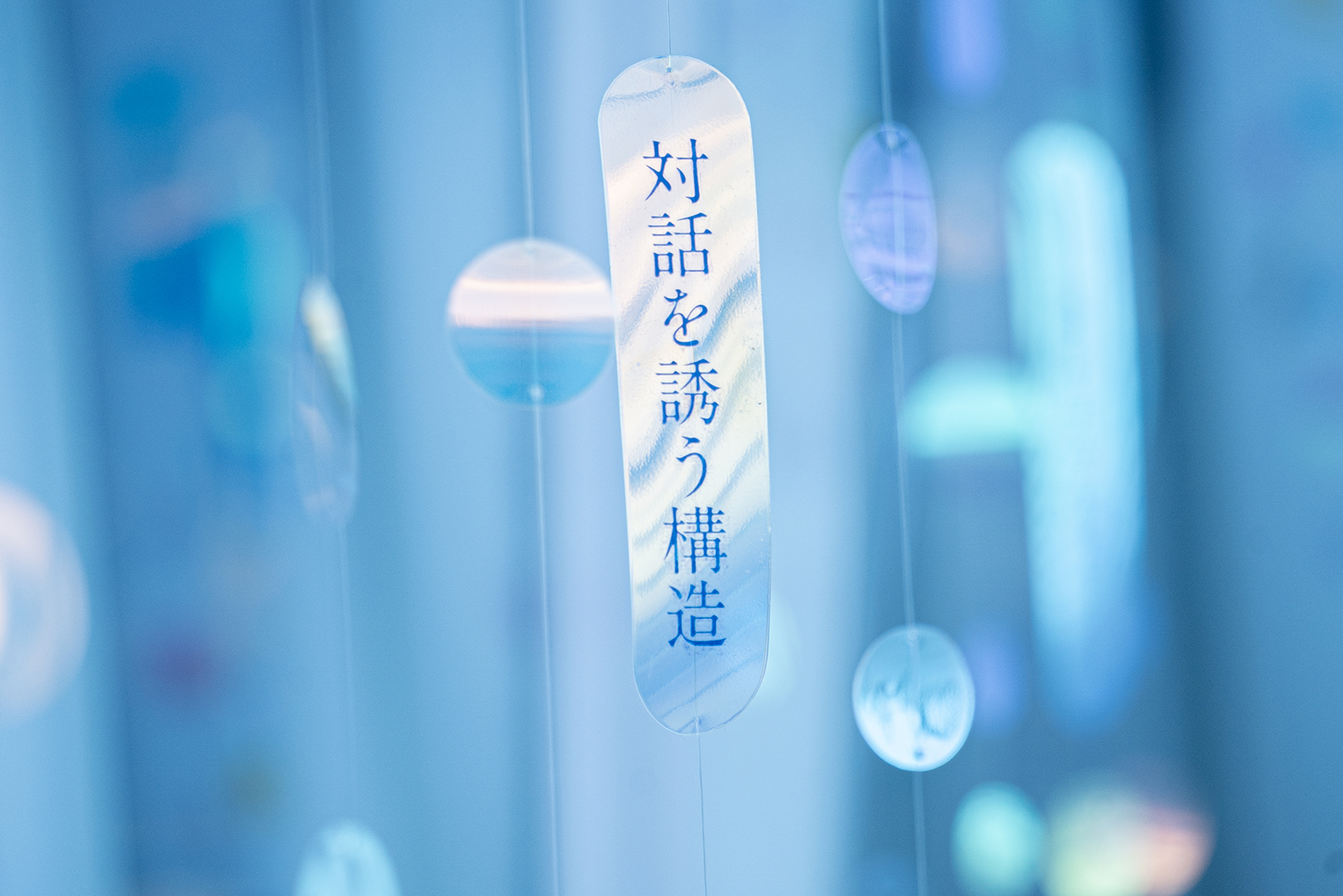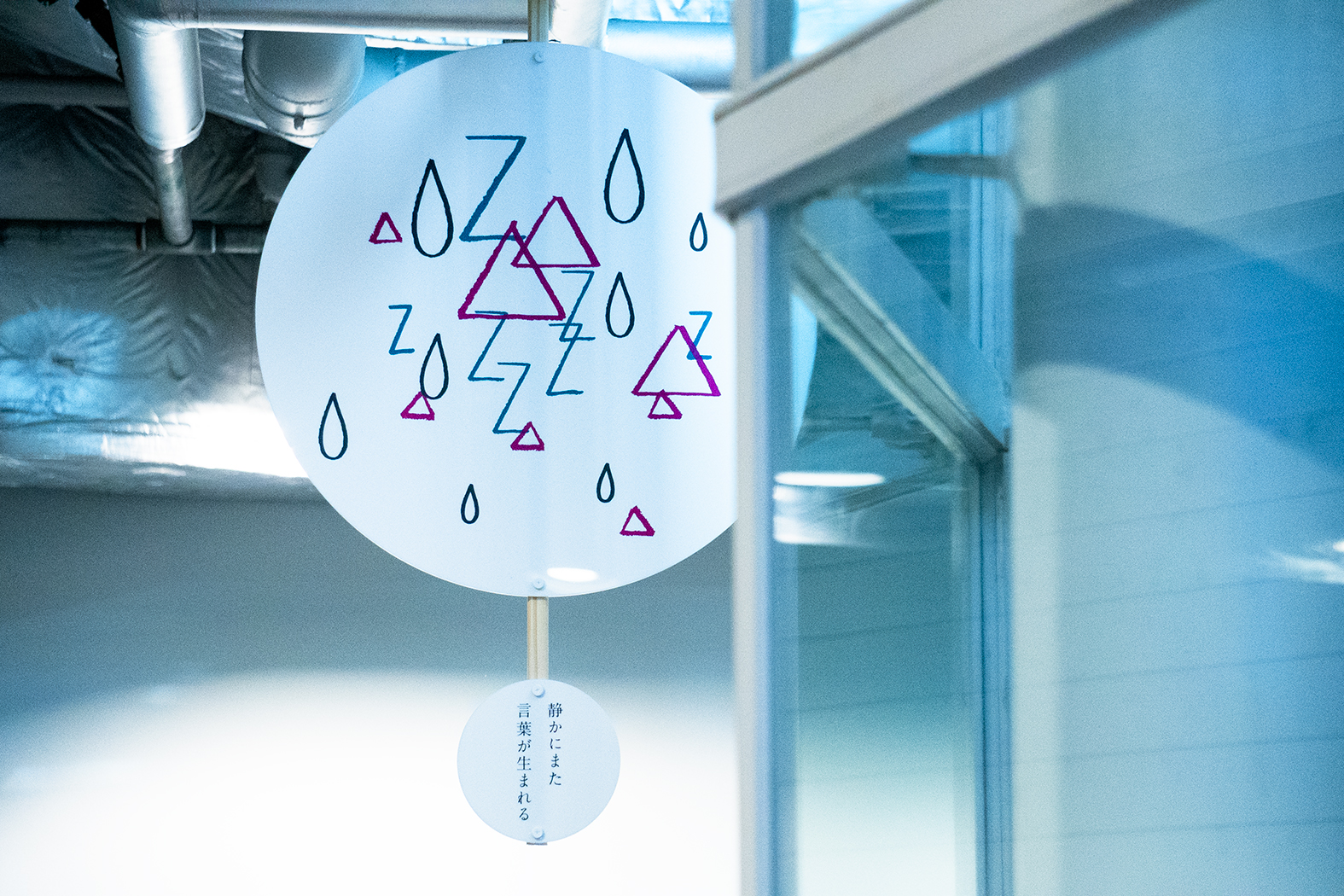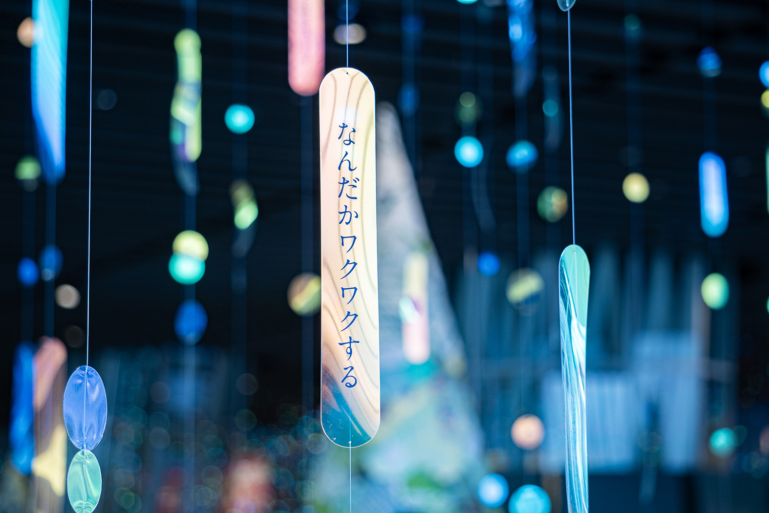 会場に無数に存在する「言葉の雨」は中川ケミカルさんのセプテットフィルムを加工した物。