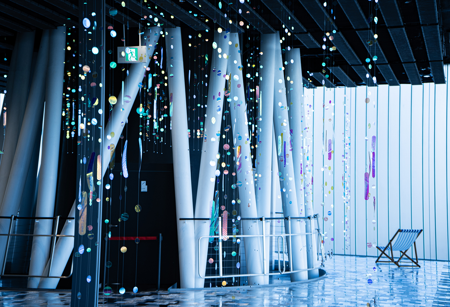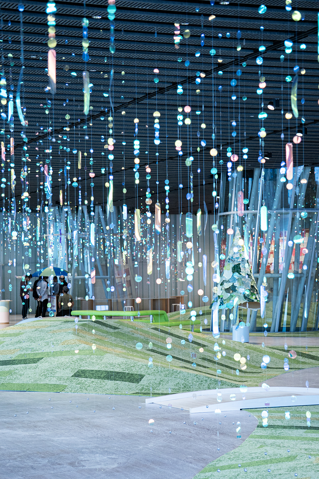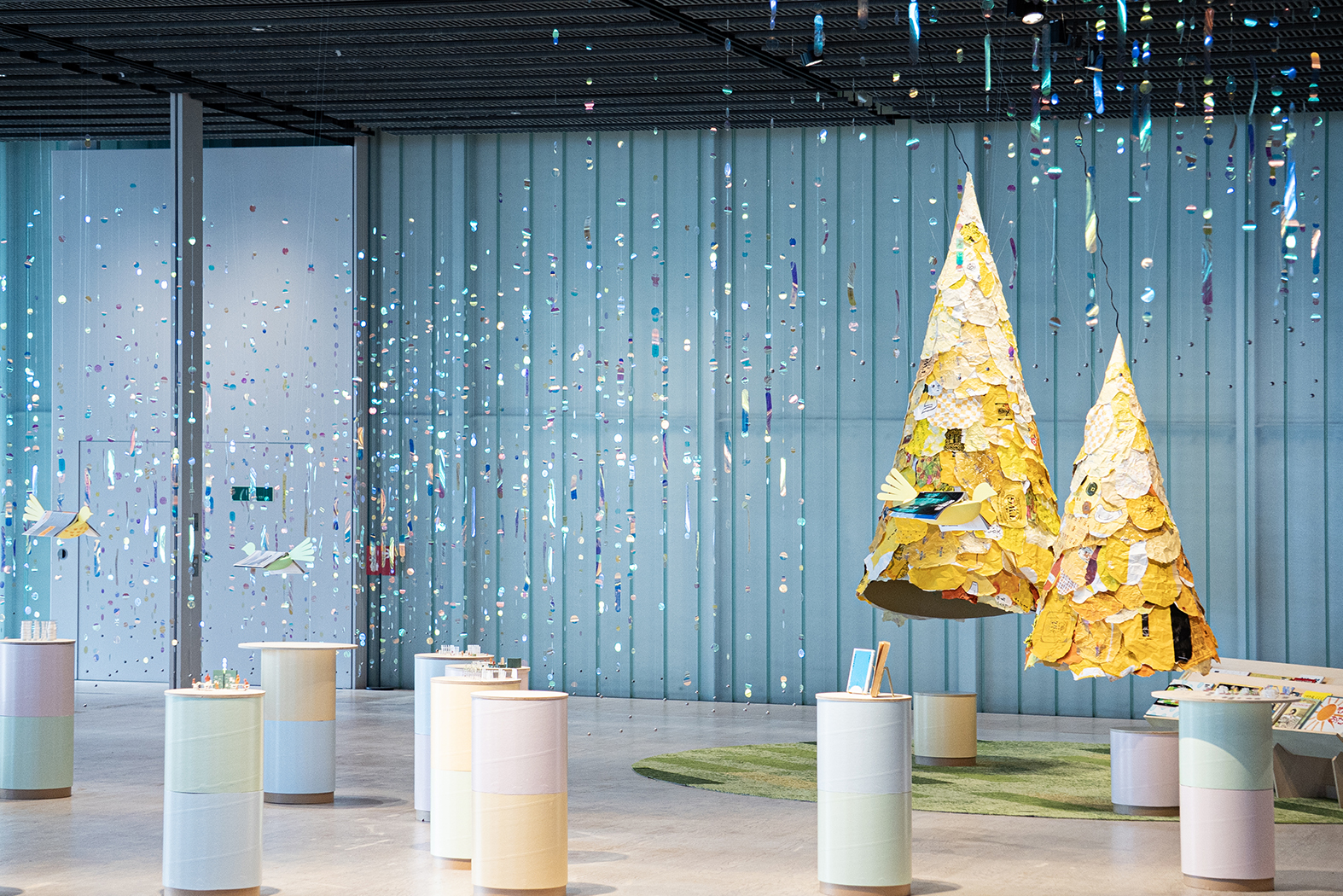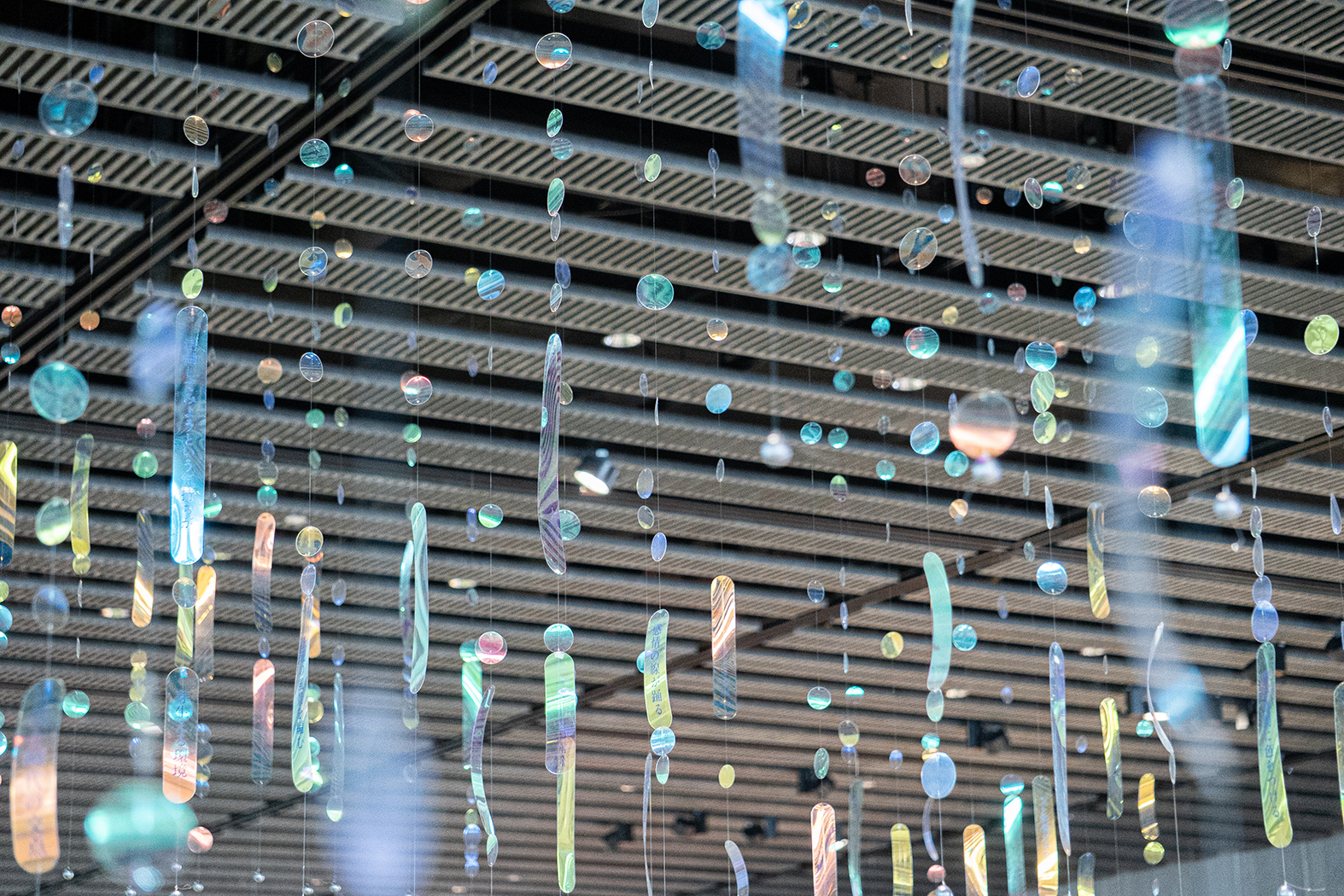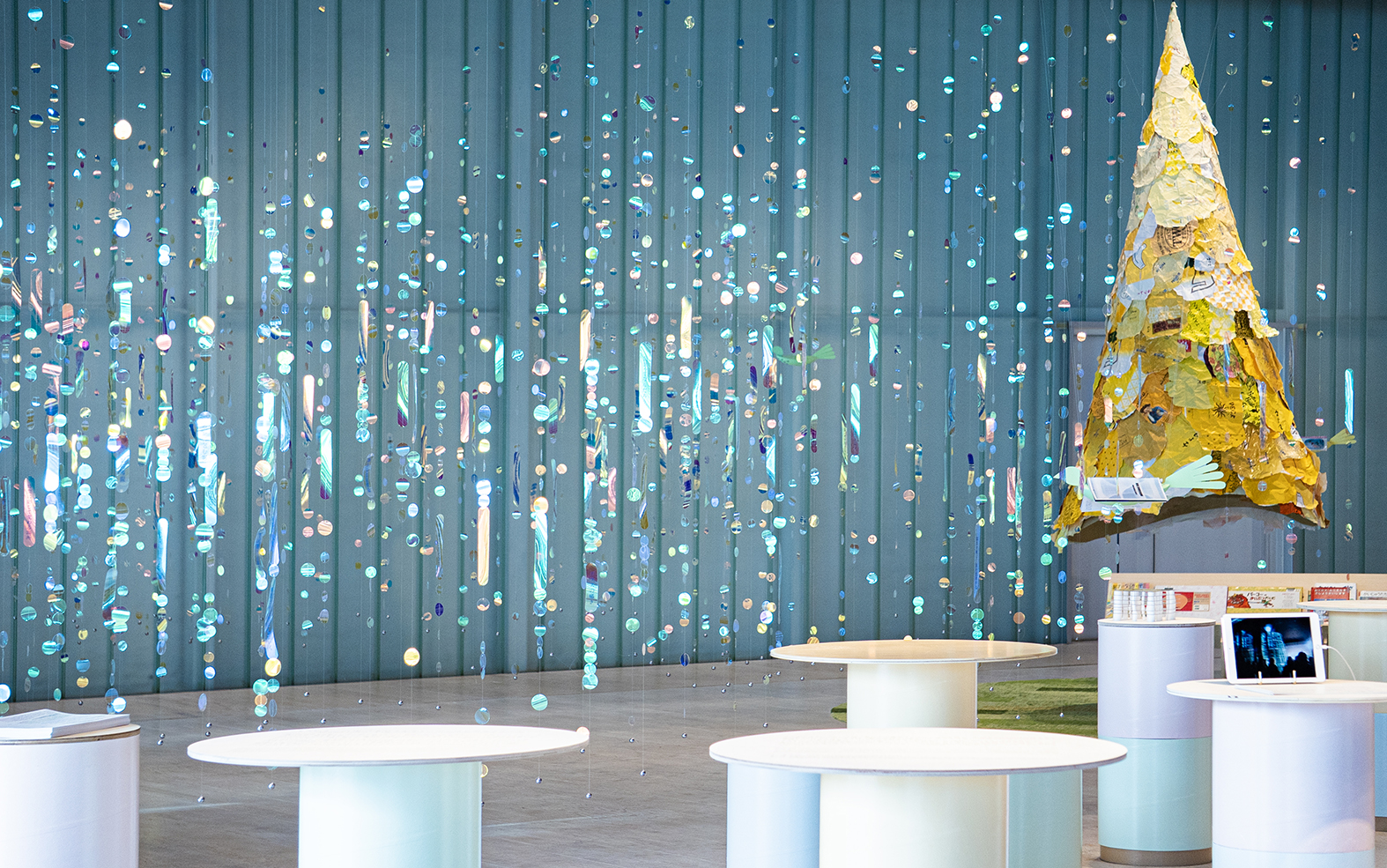 会場に無数に存在する「言葉の雨」は中川ケミカルさんのセプテットフィルムを加工した物。