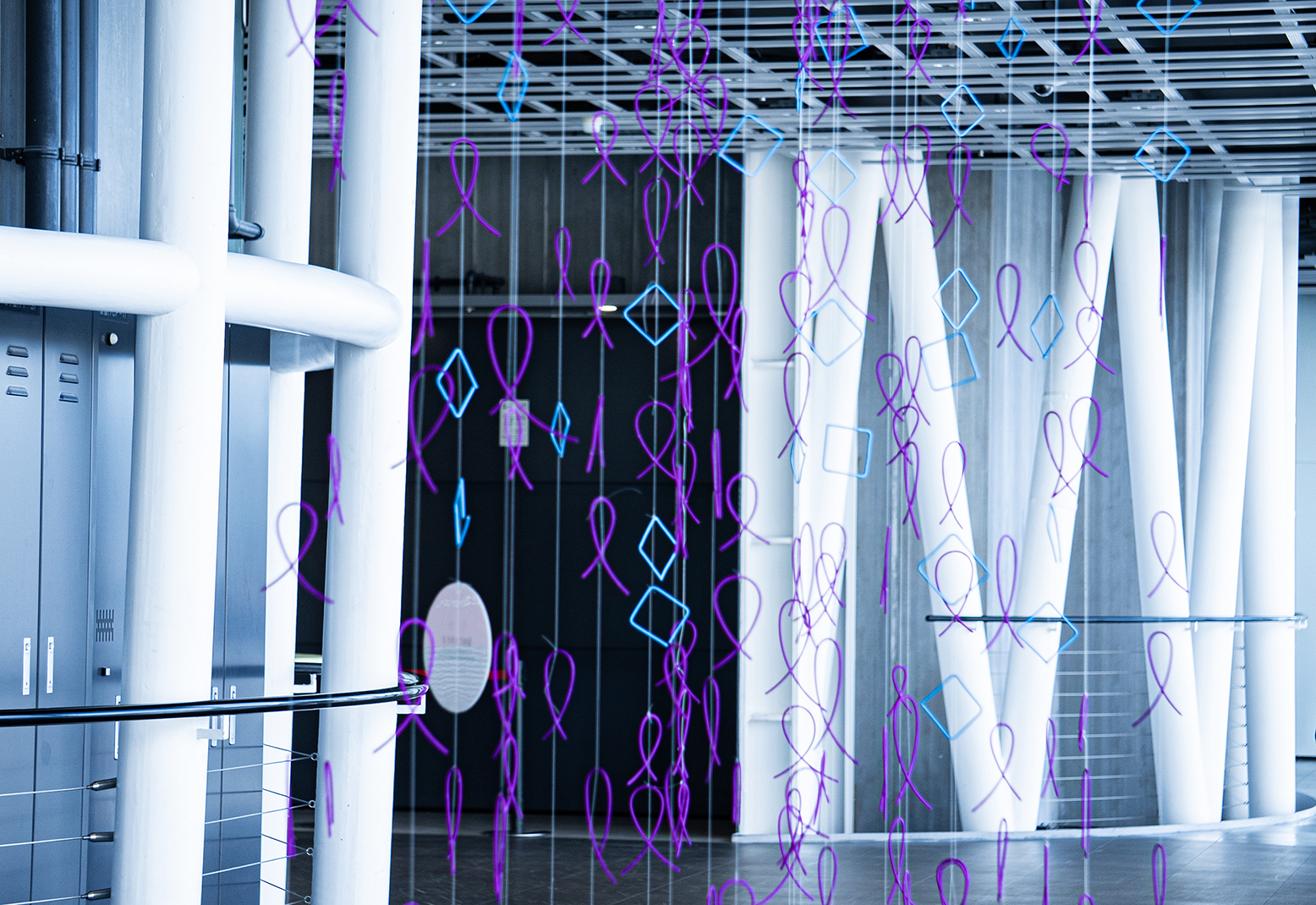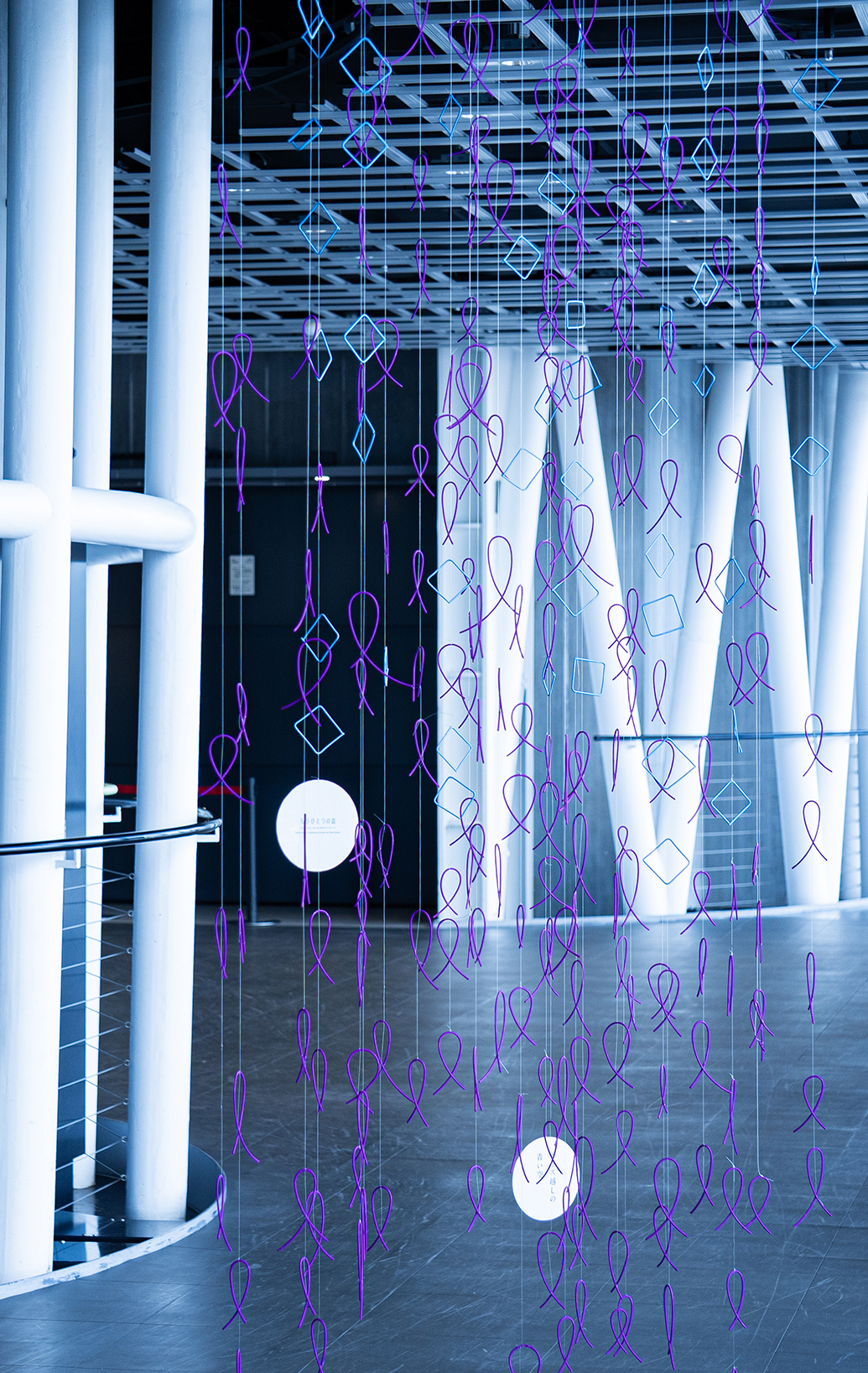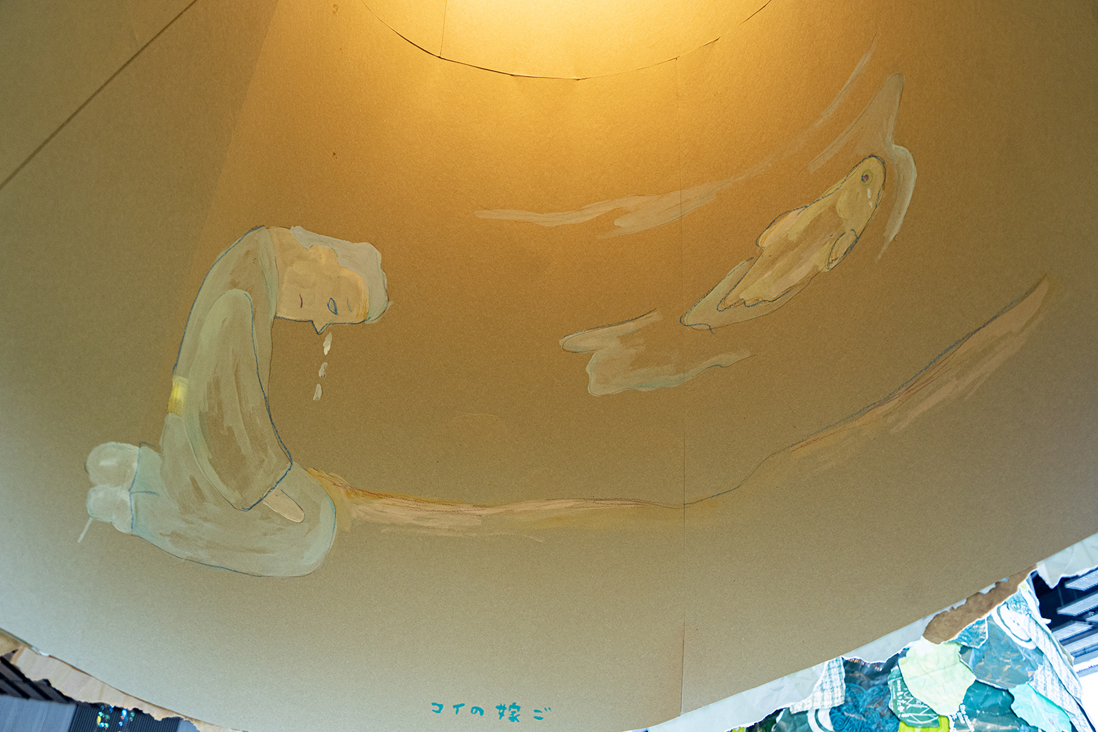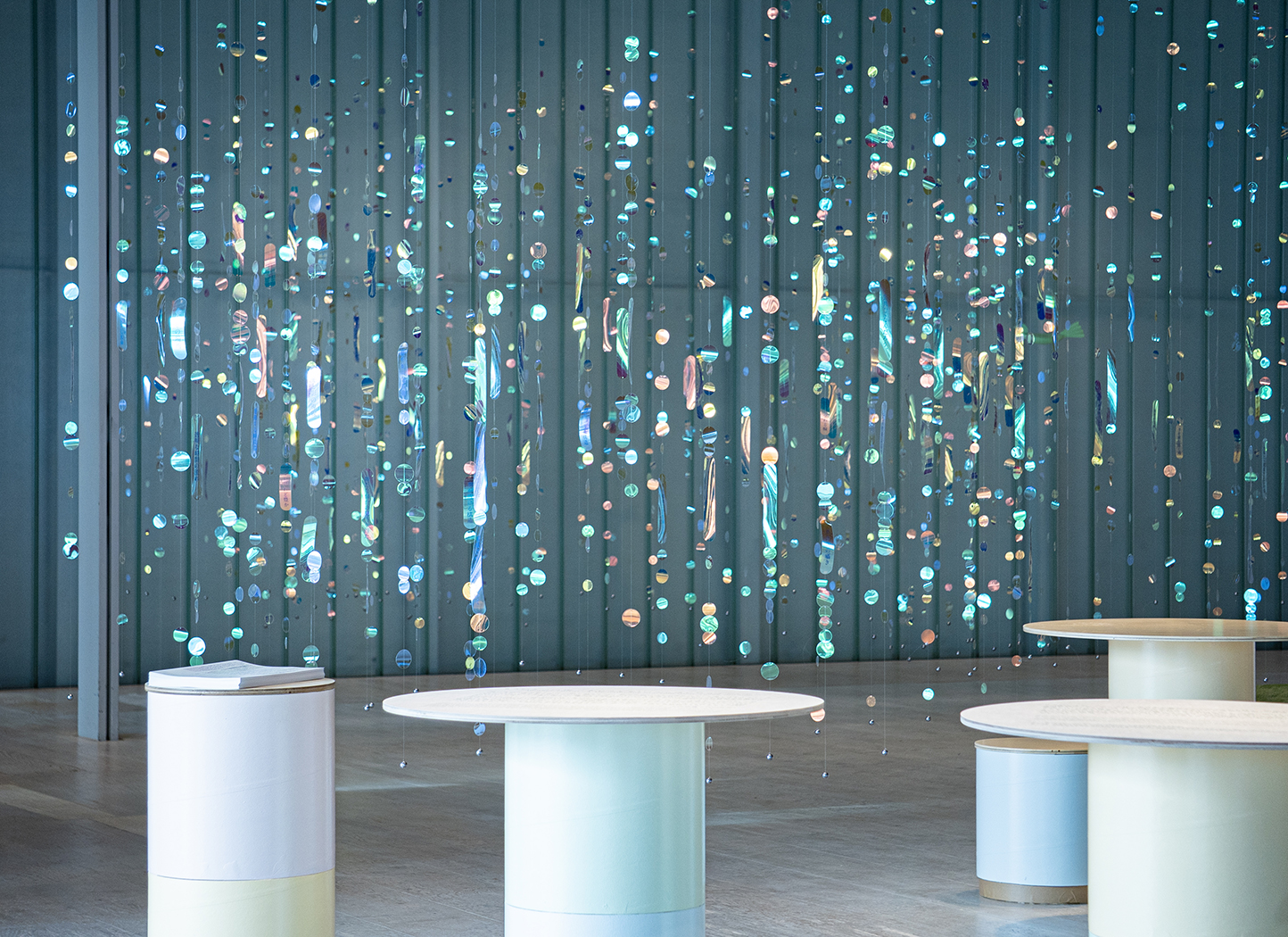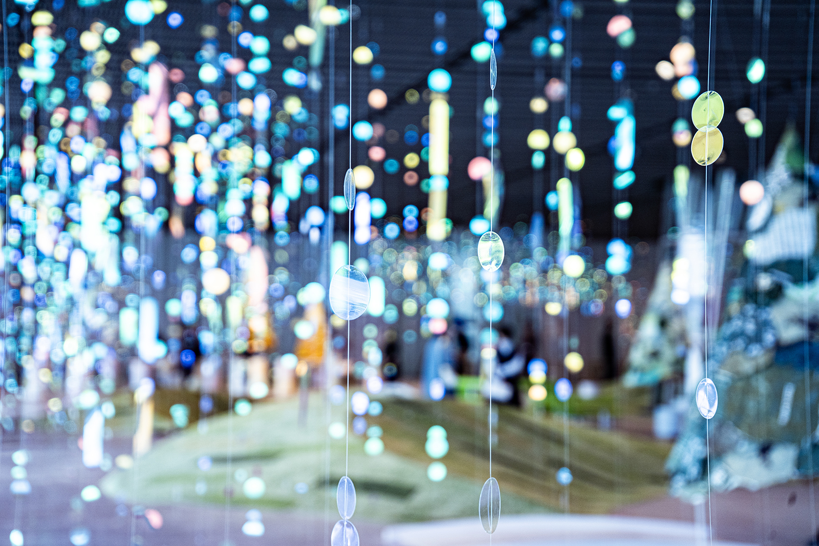 会場に無数に存在する「言葉の雨」は中川ケミカルさんのセプテットフィルムを加工した物。