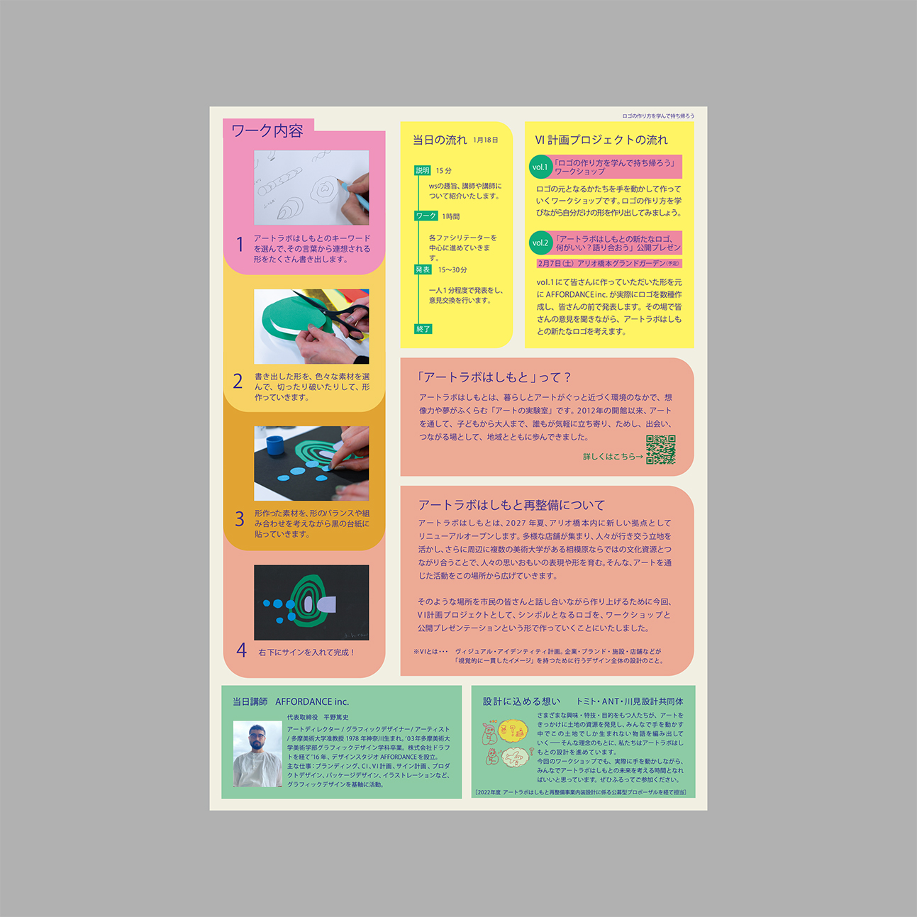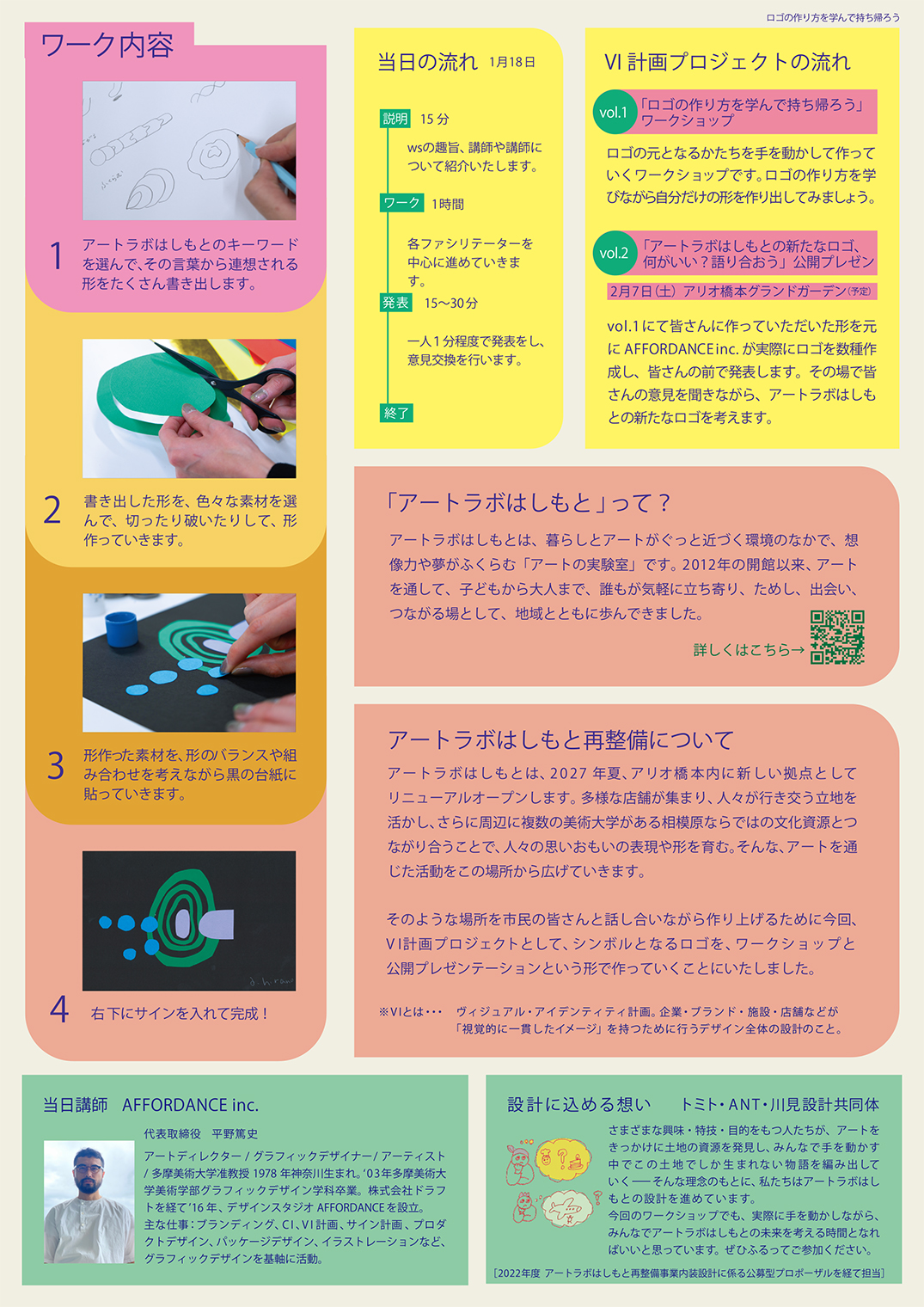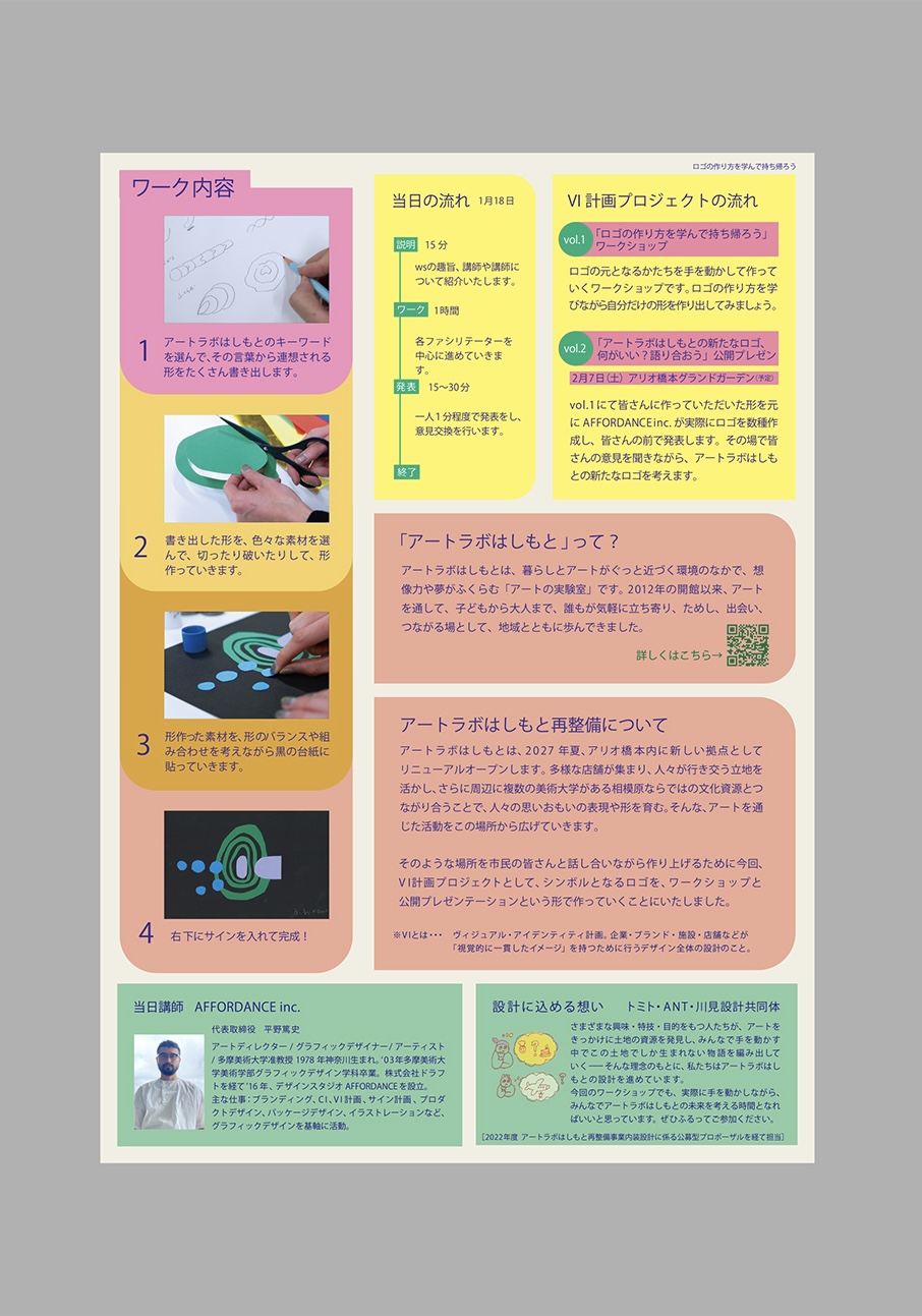 今回、VIを計画していく上で、アートラボはしもとのイメージを基に多くの方とワークショップを開催し、形を作り出していこうとしています。