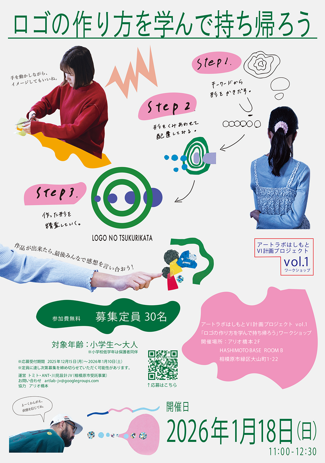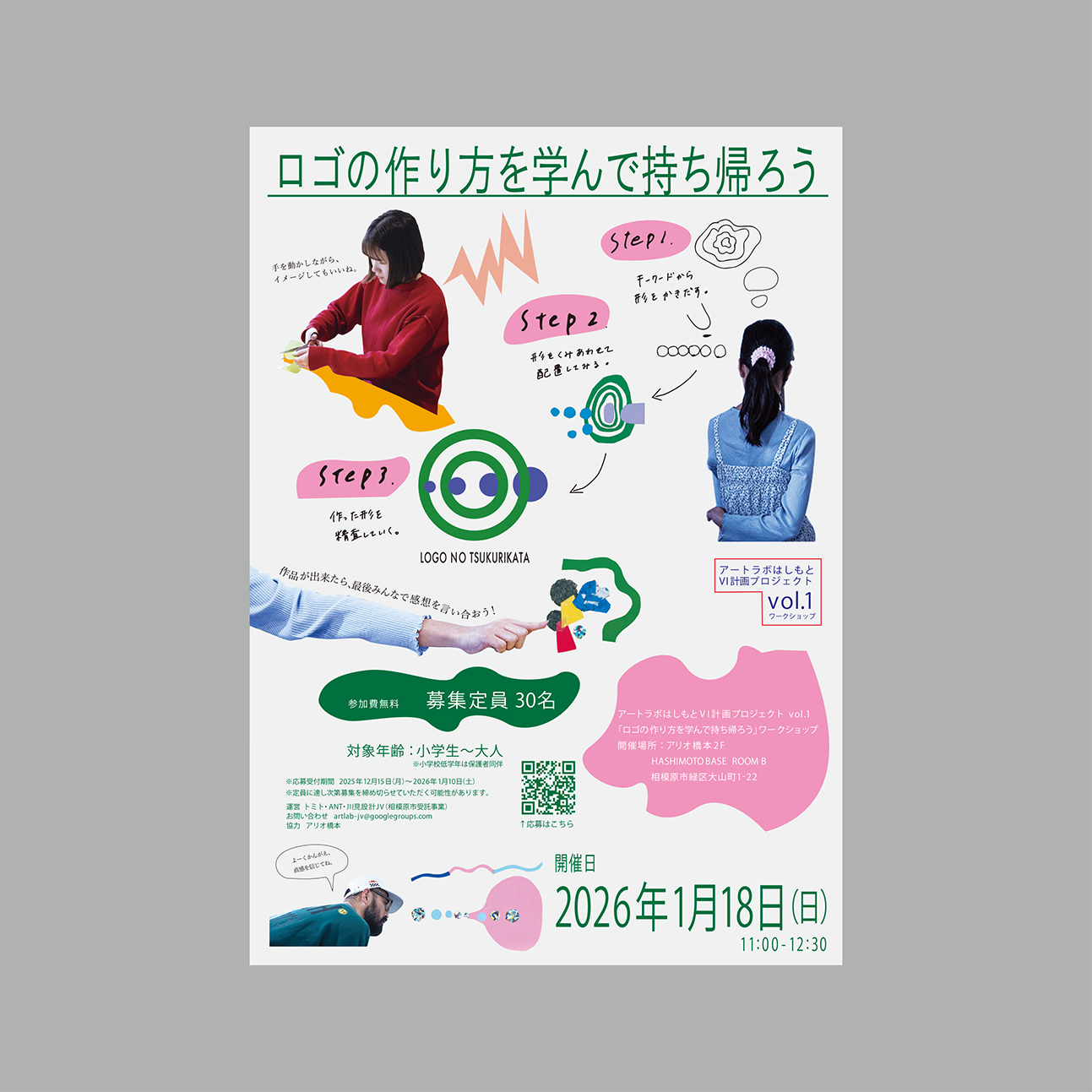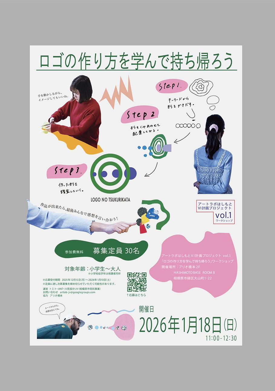 僕らが講師として、「ロゴの作り方を学んで持ち帰ろう」というワークショップをアリオ橋本2F HASHIMOTO BASE ROOM Bにて2026年1月18日(日)にて開催します。
